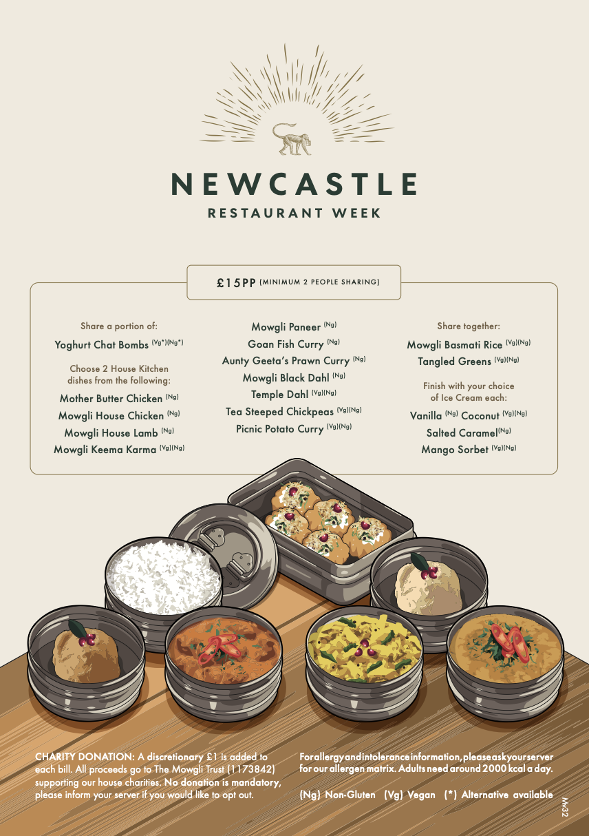 We’re celebrating Newcastle Restaurant Week, between 12th – 18th January. Enjoy a taste of our favourite Mowgli dishes for just £15pp.