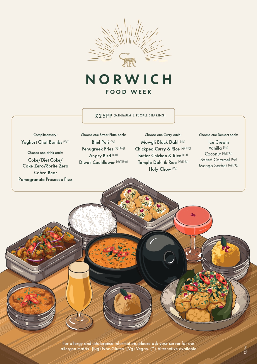 We’re celebrating Norwich Food Week, between 27th February – 8th March. Enjoy a taste of our favourite Mowgli dishes for just £25pp.