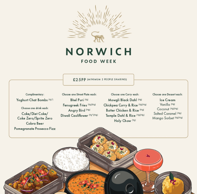 We’re celebrating Norwich Food Week, between 27th February – 8th March. Enjoy a taste of our favourite Mowgli dishes for just £25pp.